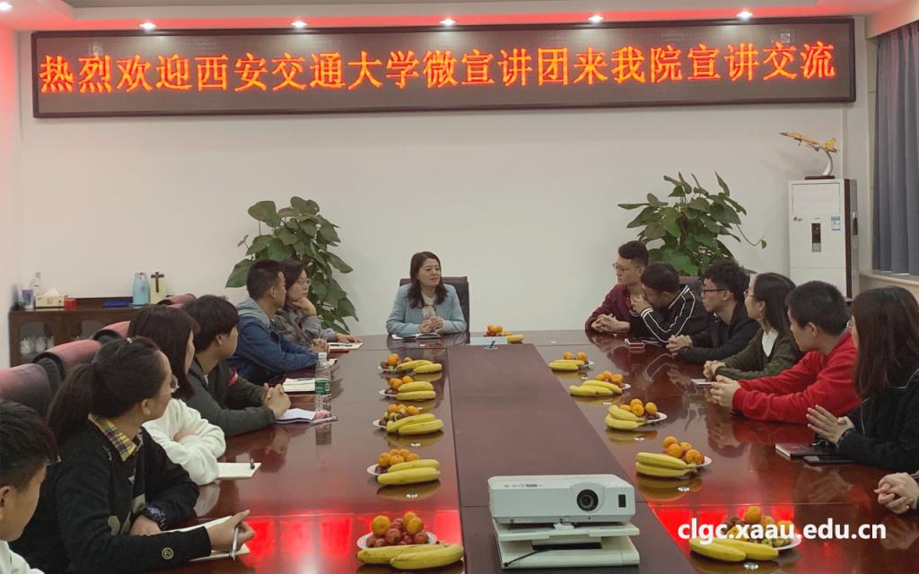 10月31日15:00,BEAT365英国官网特邀西安交通大学材料学院学生微宣讲团来BEAT365官网作题为“弘扬西迁精神,厚植爱国情怀”的宣讲活动,宣讲会在阎良校区阶一报告厅举行,BEAT365官网学生管理科科长雒亚男,全体辅导员、学生党员、团学干部和发展对象参加,会议由辅导员来东主持。