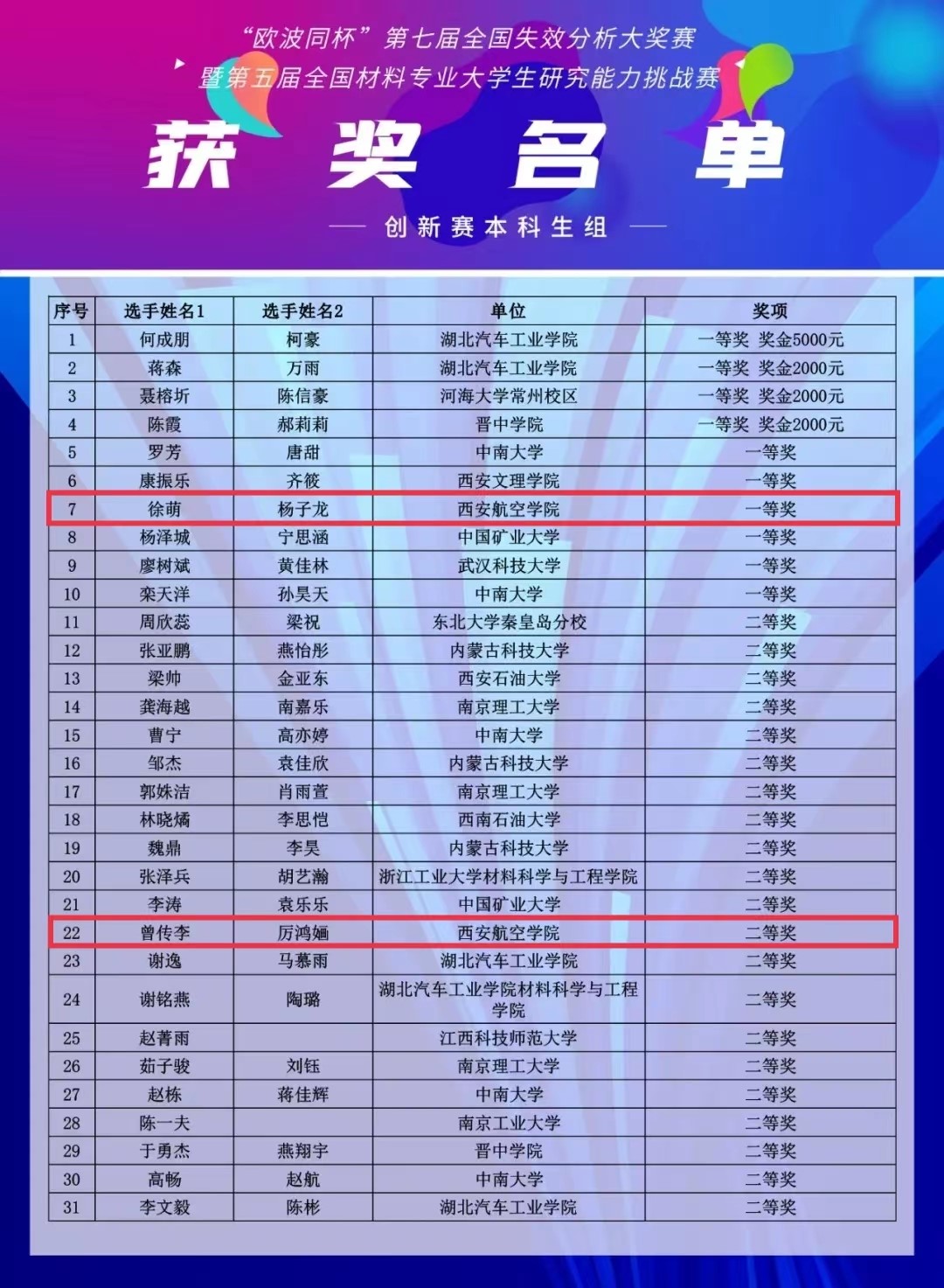 BEAT365官网学生在“欧波同杯”第七届全国失效分析大奖赛中荣获佳绩