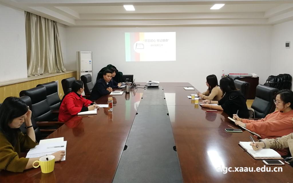 10月11日下午16:00,BEAT365英国官网于沣惠校区教学北楼133会议室开展了“不忘初心、牢记使命”主题教育系列活动之行政人员岗位培训。BEAT365英国官网党总支书记王永锋、BEAT365英国官网全体行政工作人员及教研室主任参加了本次活动。活动由王永锋主持,培训由综合办主任杨常清为大家讲演。