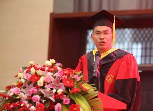 第四项,教师代表李兆副教授发言。李老师希望毕业生们珍惜大学四年的美好回忆,带着学到的知识本领自己人生道路上走向辉煌。这既是毕业也是开学,毕业生们就要从学校毕业,走上社会的学习大环境,希望毕业生们保持自信、自立、创新的积极心态。今后时光,行万里仍不忘母校。