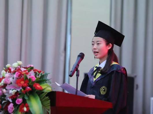 第五项,学生代表材料成型1805班吕云发言。首先,她代表所有毕业生向辛勤付出的老师们致以最真诚的感谢!随后,她回顾这四年的学习时光,希望学弟学妹们珍惜时光,在大学时光不留遗憾。最后,她表达了对母校的不舍,同时也祝愿母校更加美好。