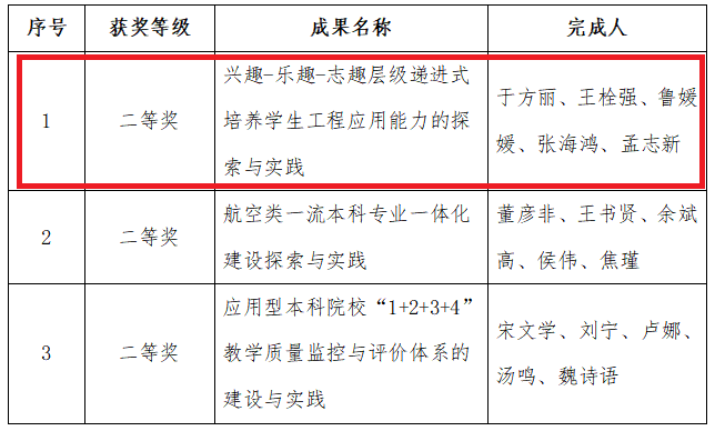 近日,陕西省人民政府办公厅发布了《关于表彰陕西省2021年高等教育教学成果奖获奖项目的通报》(陕政办函〔2022〕64号),BEAT365官网于方丽教授率领申报的《兴趣-乐趣-志趣层级递进式培养学生工程应用能力的探索与实践》荣获二等奖。