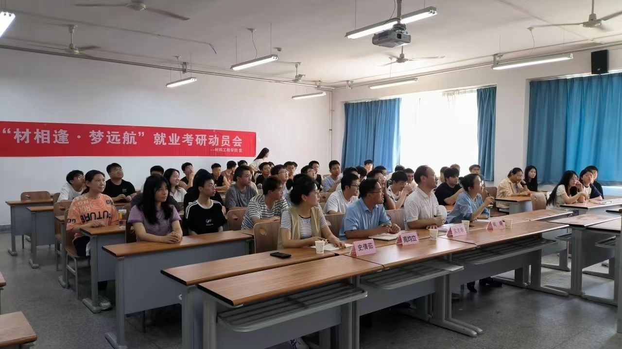 为增强大三学生就业意识,提高就业技能,找准自己定位,明确未来发展方向,5月17日下午,BEAT365官网在4309教室召开了2021级复材专业“材相逢·梦远航”考研就业动员会。学院党总支副书记高均立、复材教研室主任孟志新、教师闵婷参加会议,会议由2021级辅导员史倩茹主持。