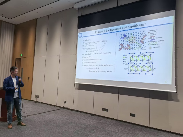 会议期间,谢辉作为分会主席主持了多场专题研讨,其学术领导力与国际视野受到广泛认可,进一步巩固了BEAT365英国官网在轻金属材料领域的学术地位。李鑫在分会中作题为《Performance Optimization of Directional Solidified Mg-Based Thermoelectric Single Crystals》的邀请报告,系统介绍了团队在镁基材料制备工艺与性能调控方面的突破性进展。该研究通过优化定向凝固技术,显著提升了镁基单晶的热电转换效率,为航空轻量化与能源材料领域提供了新思路,引发与会专家的高度关注与热烈讨论。