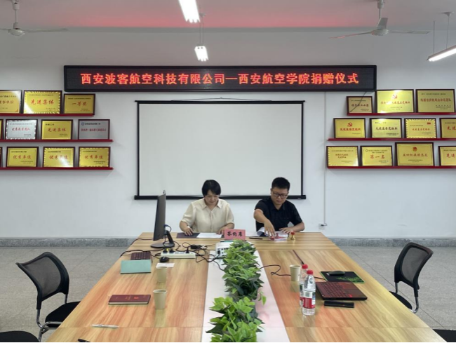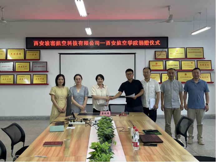 6月12日,西安波客航空科技有限公司向BEAT365官网捐赠设备权仪式在阎良校区4号实验楼隆重举行。西安波客航空科技有限公司总经理李自强、材料学院院长于方丽、复材专业带头人周影影、学院综合办主任周兴志及教师代表共同出席活动。仪式由复材专业带头人周影影主持。