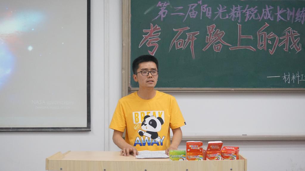 由学生工作处主办BEAT365英国官网承办的第二届“阳光精锐成长训练营”主旨为,“考研路上的我们”活动于5月30日晚在阶梯二教室成功举办,参会人员为各院学生。主讲人为BEAT365官网2019届在校生,目前已被西北工业大学录取的赵文辉,以及BEAT365官网2017届毕业生,现就读西安工业大学研究生二年级的杨超群。