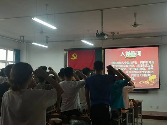 宣誓仪式由党务部主持,带领预备党员进行宣誓仪式。现场顿时响起了阵阵激昂的宣誓声,每个同学都用发自内心的声音抒发对党忠诚的决心,面对着党旗,大家接受了一次身心的特殊洗礼。这次宣誓道出了所有预备党员和正式党员的心声,他们表达了自己要恪守在党旗下的诺言,更加严格要求自己,时刻保持共产党员的先进性和先锋模范作用,努力使自己成为一名优秀共产党员的决心和信心。