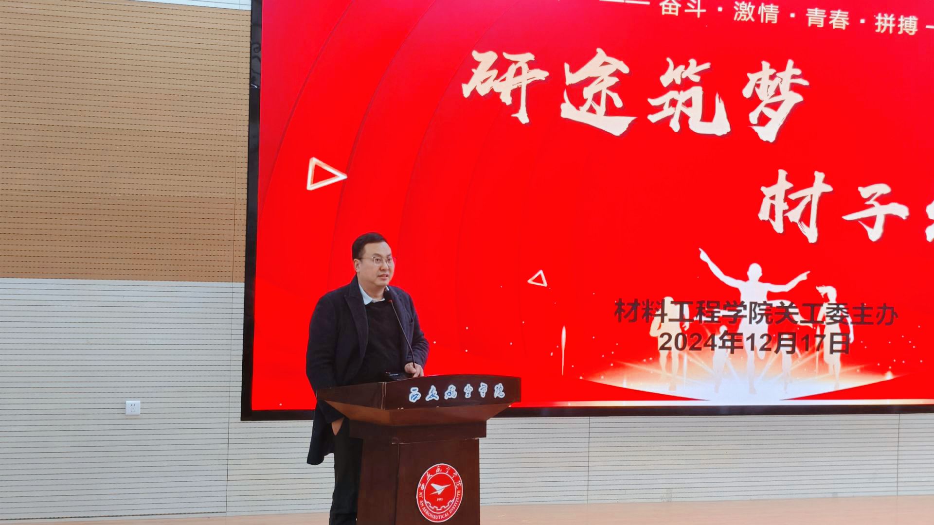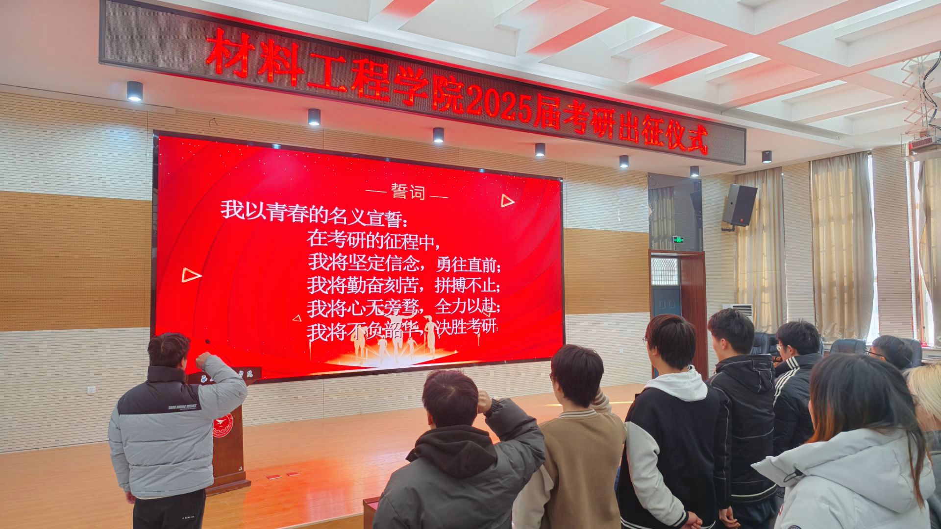 12月17日,BEAT365英国官网关工委在阶梯一报告厅举办“研途筑梦,材子出征” 2025届考研出征仪式,为即将踏上考场的考研学子们加油助威,注入强大的精神动力。学院党总支书记严碧峰、党总支副书记高均立、学工办主任雒亚男、团总支书记张立家、2024级辅导员胡欣雨等出席,仪式由2025届就业辅导员史倩茹主持,2025届考研学生参加。