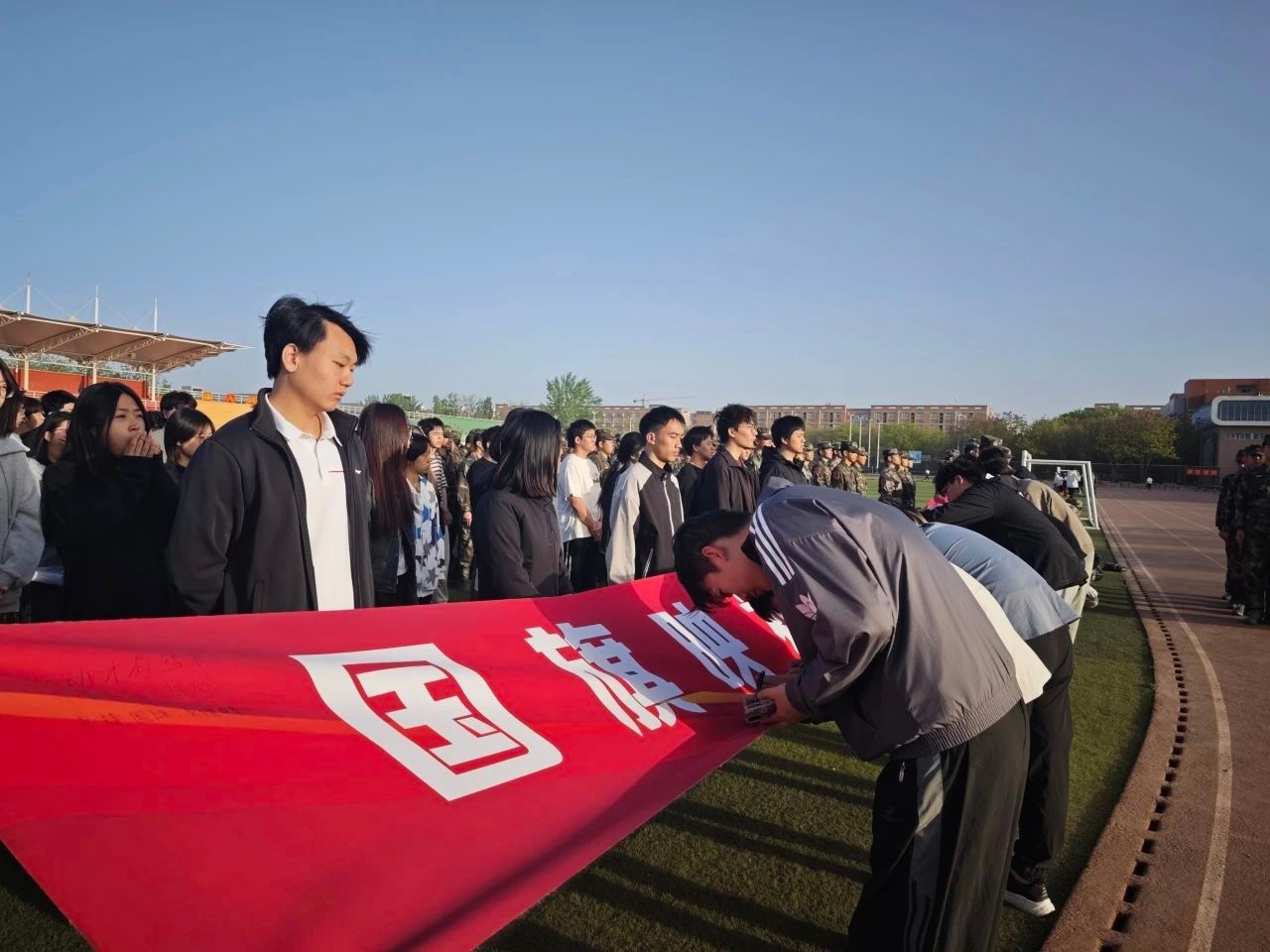 活动最后,BEAT365英国官网及军士学院学生在横幅上签名留念。五星红旗见证了学校七十年的风雨兼程,也铭记着反法西斯战争的伟大胜利。那段浴血奋战的历史时刻提醒我们:和平来之不易,发展任重道远。