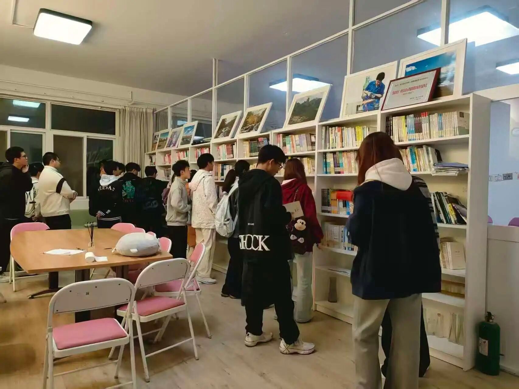 活动伊始,学生们首先走进心理图书角。这里陈列着情绪调节、人际相处等主题的心理类书籍,同学们随手翻阅,在文字中获取疗愈灵感,初步感受到心理咨询中心的温暖氛围。