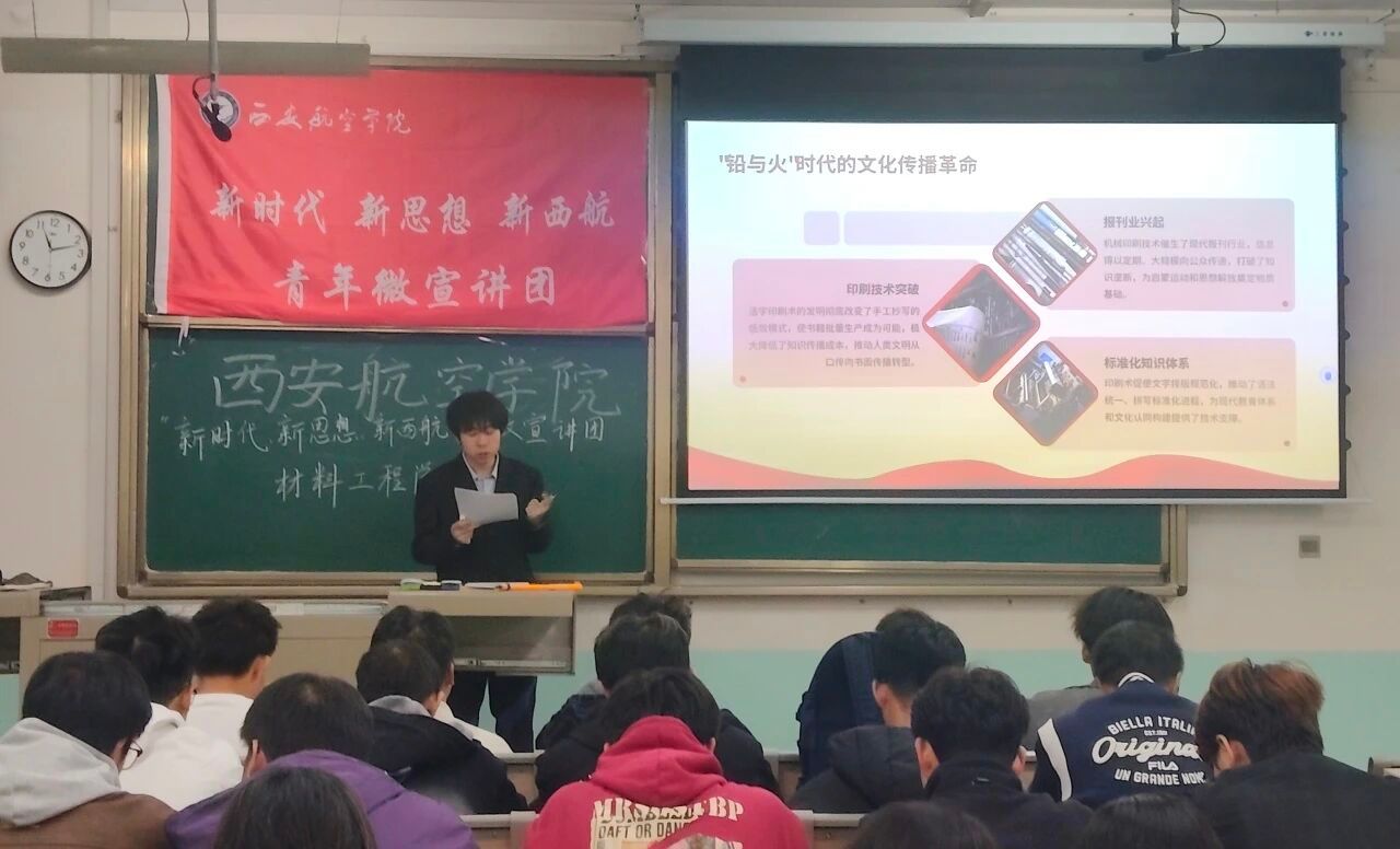 宣讲团成员淡圣洁以“党的二十届四中全会:为何着力打造新兴支柱产业”为题,从国家发展战略、产业升级需求、青年责任等维度,阐述了打造新兴支柱产业对于经济高质量发展、科技自立自强的重要性,尤其聚焦航空产业在新兴支柱产业中的定位与潜力,引导同学理解产业发展与专业学习的关联。