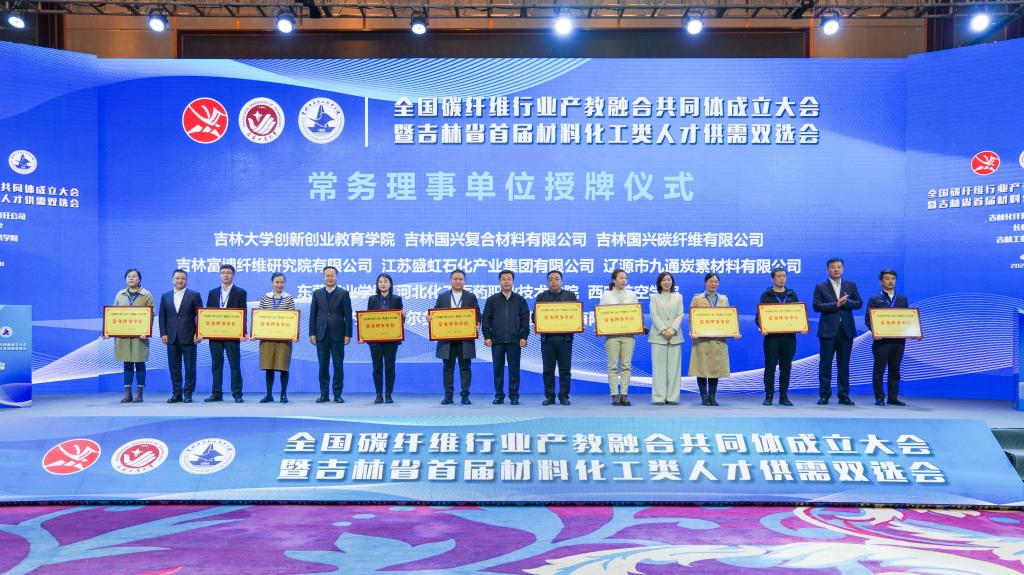 全国碳纤维行业产教融合共同体由吉林化纤集团、长春工业大学、吉林工业职业技术学院共同牵头,联合国内碳纤维行业上下游企业、高等学校、科研机构和行业共120余家单位筹建组成,成立大会由吉林工业职业技术学院院长宋立军主持,教育部、工信部直属有关单位及省直相关部门负责人,高等院校、行业企业、科研院所等单位的嘉宾和代表约120人参加了会议。会议期间表决通过了共同体理事长单位、副理事长单位、常务理事单位,第一届理事长、副理事长、常务理事、秘书长、副秘书长,审议了《全国碳纤维行业产教融合共同体章程》《全国碳纤维行业产教融合共同体工作计划》,明确了共同体阶段性工作任务,为共同体发展指明了方向。