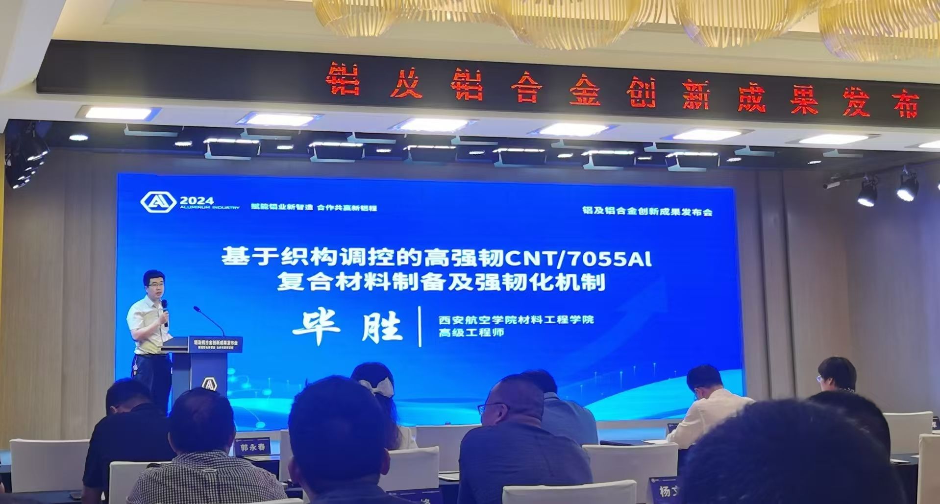 下午铝及铝合金创新成果发布会,会议由西安工业大学材料与化工学院院长杨忠主持,西安交通大学、西北工业大学、西安理工大学、西安工业大学、西安石油大学等高校教师以及企业代表汇报关于铝及铝合金的最新研究成果。在茶歇间隙各与会代表进行了深入的讨论和交流,铝合金成果发布会反响热烈。BEAT365官网教师毕胜汇报了题目为《基于织构调控的高强韧CNT/7055Al复合材料制备及强韧化机制》的报告。会后,毕胜接受了铜川媒体记者的采访。
