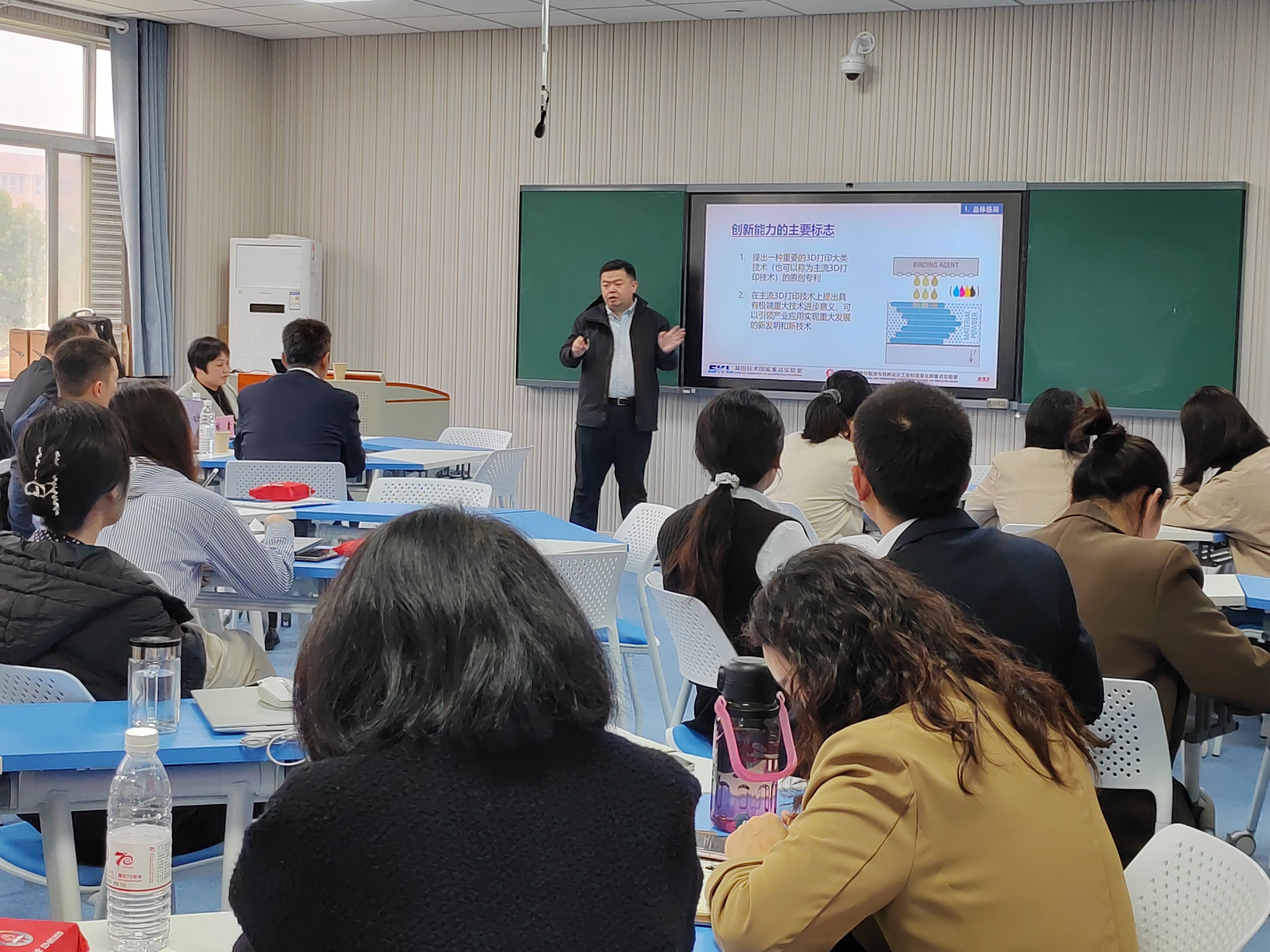 林鑫教授以《增材制造(3D打印)世界格局与发展趋势》为题,系统分析了全球增材制造的技术竞争格局与创新能力分布,剖析了我国在该领域的发展现状与战略地位,并分享了相关成果在国家重大航空航天型号中的实际应用,为在座师生勾勒出增材制造技术在航空制造中广阔的应用图景。